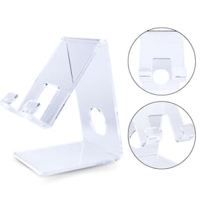 Características principais: - para tablets e celulares; - o uso do celular pode ser na vertical ou horizontal; - possui abertura para carregador; - seu design transparente permite visibilidade completa; - compacto para armazenar e transportar; - feito de acrílico resistente.