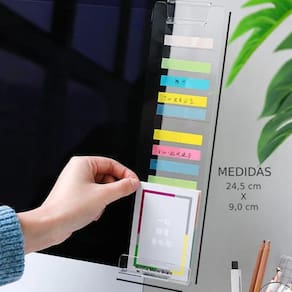 Feito em acrílico transparente de alta qualidade, o suporte é resistente e durável. Ele pode ser facilmente fixado à esquerda do seu monitor de computador, ocupando pouco espaço e proporcionando fácil acesso às suas anotações e cartões.