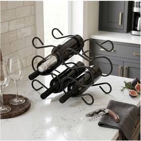 Suporte Adega Para 6 Garrafas Vinho Champanhe Aço Cozinha Preto Fosco
