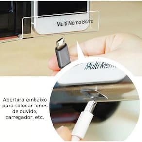 multifuncional, adequado para usar em escritório. O quadro de mensagens pode ser colado a esquerda do monitor de seu computador, que pode ser utilizado para armazenar vários cartões, organizar tópicos de reuniões home office, estudar, etc. Abaixo está o suporte para celular, blocos de notas, etc. Que também possui uma abertura para carregador ou fone de ouvido. - fácil de instalar e remover, não deixa marcas adesivas. - amplo uso - pode ser colada em qualquer lugar plano, como armários, cômodas, prateleiras. - simples e bonita