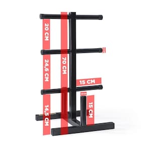 Suporte anilhas halteres musculação academia supino peso Suporte para anilhas e barras triplo Esse é o suporte perfeito para você guardar e organizar suas anilhas e barras. Leve e compacto ocupando pouco espaço na sua academia ou em casa. Nossos suportes são produzidos em aço carbono com três níveis de proteção: galvanização, fosfatização e pintura eletrostática a pó, proporcionando durabilidade, resistência e qualidade, permitindo a utilização em qualquer ambiente podendo ficar exposto ao tempo e a maresia. Dimensões do produto - tamanho: 33 x 33 x 70cm cxlxa - distância entre as hastes: 20 cm - 24,6 cm - 14,5 cm - diâmetro da haste para encaixe das anilhas: 25,4 mm 1 - feito para anilhas com furação padrão de: 31 mm - suporta barras com até: 28 mm - capacidade: 200 kg 33 kg em cada haste Itens inclusos - 1 suporte para anilhas e barras Anilhas não inclusas Imagens meramente ilustrativas Marca: Telis fitness