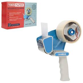 Marca: yins paper Cor: azul e cinza Composição: plástico e metal Para fitas de até 50mm fita adesiva não inclusa