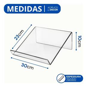 Suporte apoio de bíblia porta livros estudo leitura acrílico Conheça nosso porta livro é ideal para o apoio ou suporte da bíblia fechada ou aberta facilitando a leitura, além de ser um lindo objeto decorativo e útil para o seu altar, estante, mesinha ou local de oração. Utilizado também como apoio para livro ou tablet, o suporte auxilia na hora da leitura, proporcionado conforto ao deixar as mãos livres. Acabamento a laser de ótima qualidade Graças ao corte a laser, nossas peças em acrílico possuem Um acabamento impecável. Zero rebarbas, riscos ou danos Diretos na peça. Além disso todos os produtos em acrílico Possuem uma película de proteção, que garantem a integridade do produto no transporte. Caracteristicas - excelente resistência e durabilidade - não amarela com o tempo - ótimo para organização - mais praticidade e funcionalidade no seu dia-a-dia - película de proteção Ficha técnica: - modelo: suporte apoio de bíblia porta livros estudo leitura acrílico - material: acrílico - medidas: largura 30cm / altura 10cm / profundidade 23cm / espessura 2mm. - quantidade: 1 peça - esta compra é segura - a entrega do produto é segura Qual o prazo de entrega - o que posso utilizar para limpar o suporte Para limpar indicamos flanela macia, não utilize produtos químicos. - meu produto chegou fosco, é defeito Não, cada porta preço está com uma película de proteção, você precisa retirar a película. Possui mais dúvidas Faça sua pergunta e responderemos rapidamente : do vendedor: 1 meses