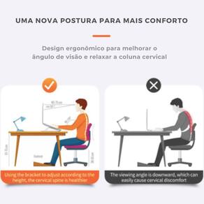 Suporte Apoio Notebook Ajustável e Ergonômico Talvez você não saiba mas trabalhar por horas e horas com o computador em uma posição ruim pode ser extremamente prejudicial, causando até mesmo problemas crônicos de coluna para o usuário.