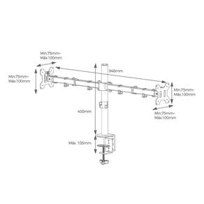 Suporte articulado 2 monitores 14 a 32 base morsa sim-3500 - modelo: sim-3500 Suporte articulado para 2 monitores 14 a 32 polegadas com base morsa sim-3500 aquário Indicado para telas de 14 a 32 polegadas com padrão de fixação vesa 75x75 ou 100x100mm hxv e com peso de até 10kg cada tela . Pode atender monitores de 34 polegadas desde que tenham largura de até 78cm, peso até 10kg cada e vesa 75x75 ou 100x100mm. 1 - fixação por morsa já vem com o produto A fixação por morsa consiste em apertar o suporte na lateral da mesa, sem a necessidade de furar ou cortar nada. É um sistema parecido com o das redes de ping - pong. Abertura máxima da morsa: 105mm milímetros espessura máxima que a mesa pode ter para que você consiga usar este sistema em seu suporte de monitor . 2 - fixação por parafuso já vem com o produto Este método consiste em usar um parafuso que transpassa a mesa para apertar o suporte para monitor de 2 telas. Neste sistema é necessário furar o tampo em alguns casos é possível aproveitar o mesmo buraco do passa cabos já existente . O parafuso é m10 10mm milímetros de diâmetro e tem comprimento útil de 88mm milímetros espessura máxima que a mesa pode ter . Esta opção de parafusar o suporte para dois monitores sim-3500 é ideal para quem não possui a borda da mesa livre. Especificações :: largura máxima para cada monitor 80cm. :: altura máxima de 40cm medida da mesa até o centro do monitor Considerando que a furação vesa na parte traseira do monitor seja centralizada. :: sua base garante segurança na instalação e uso diário. :: cada base de monitor pode ser rotacionada em 360º, permitindo visualização em orientação retrato ou paisagem. :: podem também ser inclinadas, e fazer convergência das telas. Características :: suporta duas telas. :: ajuste de altura sem ferramentas. :: inclinação tilt: de 45º para cada monitor. :: giro da coluna de 360º. :: organizador de cabos. Dados técnicos :: material: aço carbono. :: acabamento: tratamento anticorrosão e pintura eletrostática. Observações Os parafusos fornecidos no kit de acessórios do produto estão de acordo com os padrões mais comuns dentre aqueles utilizados pelos principais fabricantes de monitores e tvs lcd / led do mercado, porém pode haver exceções quanto à compatibilidade dos mesmos. Características gerais do produto: Padrão vesa mm : 75x75; 100x100 Com pistão a gás: não Tamanho da tela: de 14 a 32 Modo de fixação: morsa / parafuso Peso suportado: limite de 10kg cada tela Local de instalação: mesa Cor do suporte: preto Acompanha o produto: Suporte para monitor sim-3500 Kit de parafusos para montagem Kit para fixação morsa e parafuso Manual de instruções Certificado de : 3 anos junto ao fabricante Marca: Não Informado