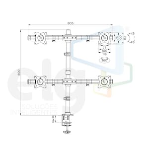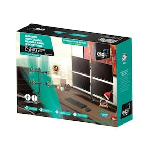 Indicado para quatro telas de 15 a 27 polegadas com padrão de fixação VESA 75x75 ou 100x100mm e com peso de até 8kg (peso de cada tela sem a base autêntico).