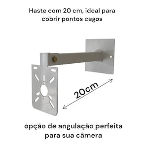 Suporte Articulado para Câmera Lente Dupla Universal Suporte para Câmera de Monitoramento - Resistente e Versátil Garanta a melhor fixação e posicionamento da sua câmera com nosso suporte de alta qualidade. Compatível com a maioria dos modelos do mercado, ele é ideal para uso interno ou externo, oferecendo praticidade na instalação e maior segurança para o seu ambiente.
