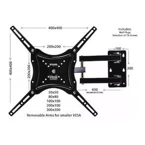 Especificações: -compatível com o padrão vesa -construção de aço frio sólido -calibre pesado -acabamento pó-revestido durável -adapta-se a maioria dos grandes plasma de tela plana / lcd tvs -a tv é montada 80-460mm da parede -suporte para tv: 14' a 55 -capacidade máxima de carga: 50kg; -inclinação: + - 15º.