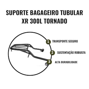 É fixado na parte traseira da moto e dá sustentação aos baús ou caixas instalados nesta parte da motocicleta.