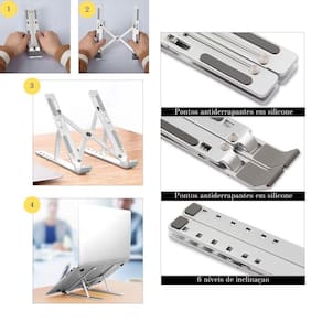 Suporte base de apoio para Notebook, Laptop, Tablet, etc. Portátil e ajustável 6 níveis.