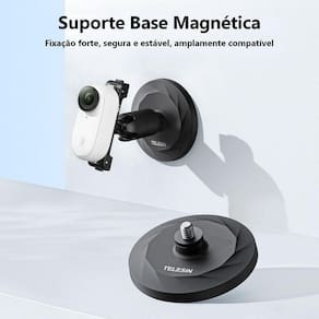 Suporte base fixação magnética pra câmera insta360 go 3 - telesin Suporte base fixação magnética pra câmera insta360 go 3 - telesin Esta base de fixação magnética da telesin, foi projetada para fixar sua insta360 go 3 ou câmeras de ação de tamanho semelhante em uma superfície magnética para filmar diversos tipos de vídeos, seja em seu carro ou praticando algum exercício. A base possui seis ímãs embutidos capazes de suportar cargas de até 300g. Quando fixada a um veículo, a base pode suportar velocidades de até 60 km/h para gravações de vídeo em estradas. Um parafuso de 1/4-20 na parte superior da base pode acomodar uma câmera, suporte articulado ou suporte de smartphone. O amortecimento de silicone na parte inferior garante que a superfície de montagem escolhida permaneça livre de danos, sem arranhões ou riscos. Importante: 1.Este produto não é recomendado para uso em atividades como surf, esqui, rafting ou outros esportes de alto impacto e alta intensidade. 2. Ao usar este produto no exterior de veículos, como carros ou motocicletas, ele está limitado a estradas urbanas planas. Certifique-se de que a área onde a base será fixada está limpa e lisa. Controlar rigorosamente a velocidade do veículo abaixo de 60 km/h, sendo aconselhável utilizar um cordão de segurança se as condições o permitirem, para prevenir acidentes. 3. Não conecte nenhum de selfie ou poste de extensão externamente. Recomenda-se usar com o suporte de direção go 3 ou um adaptador com um furo de parafuso de 1/4. 4. Faixa de temperatura operacional: -10c a 40c. 5. Se ocorrerem acidentes devido ao uso indevido, o usuário é responsável por quaisquer danos resultantes. Principais vantagens: - base com fixação magnética - capacidade de carga de 300g - parafuso de montagem 1/4-20 - suporta velocidades de até 60 km/h - base com amortecimento de silicone para não arranhar a superfície Dados técnicos: Marca: telesin Modelo: mg-005 Material: liga de alumínio + fibra de vidro Peso suportado: 300g Velocidade suportada: 60 km/h Tamanho: 6,66 x 2,28cm Compatibilidade: Compatível com câmera insta360 go 3 e também câmeras de tamanho e peso similares Itens inclusos: 1x suporte base magnética - telesin Câmera não inclusa Imagens meramente ilustrativas de 90 dias após o recebimento do produto Esta é válida para todo o território nacional, e ela cobre defeitos de fabricação. Para maiores informações consulte o site do fabricante ou contate-nos pelos nossos canais de atendimento. Por que comprar seu equipamento com a proaventura
