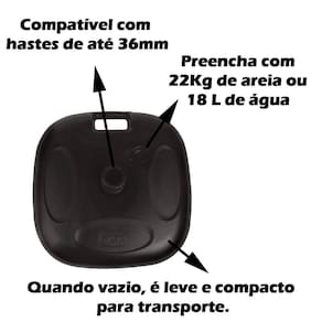 Capacidade de Preenchimento: Pode ser preenchido com até 18 litros de água ou 22 kg de areia, proporcionando a estabilidade necessária para manter seu guarda-sol no lugar.