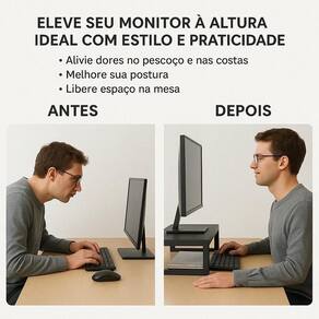 Sua Jornada para um Home Office mais Confortável Começa Aqui Olá, tudo bem Você sabia que passar muitas horas olhando para um monitor na altura errada pode afetar sua postura e causar dores nas costas Com tantas horas em frente ao computador, o suporte adequado é fundamental para a sua saúde e produtividade. Pensando nisso, apresentamos o Suporte para Monitor Ergonômico da Ibi Acessórios, a solução ideal para transformar seu espaço de trabalho Por que Escolher o Nosso Suporte para Monitor Sabemos como é frustrante sentir o desconforto no pescoço e nas costas após um longo dia de trabalho. E é aí que entra o Suporte para Monitor Ergonômico Ibi Acessórios: ele vai melhorar sua postura, aumentar seu conforto e organizar seu espaço de trabalho de forma simples e eficiente. Especial para Você Os 3 Principais Benefícios: 1. Ergonomia de Ponta: Ajuste perfeito para garantir a postura correta e evitar dores nas costas e pescoço. 2. Maior Conforto no Trabalho: Eleva seu monitor à altura ideal para um trabalho sem desconfortos. 3. Design Moderno e Funcional: Feito com material resistente e de alta qualidade, para um toque de sofisticação no seu ambiente. O Que Nossos Clientes Estão Dizendo: Comprei o suporte da Ibi Acessórios e meu home office nunca mais foi o mesmo Agora trabalho mais confortável e sem dores. Recomendo a todos - Lucas P. Simplesmente perfeito A qualidade é excelente e o ajuste da altura do monitor fez toda a diferença no meu dia a dia. - Mariana S. Não Perca Tempo, Adquira Já o Seu Não deixe que dores e desconforto interfiram no seu trabalho. Com o Suporte para Monitor Ergonômico Ibi Acessórios, você vai alcançar um novo nível de conforto e produtividade. Clique no botão abaixo e garanta o seu agora mesmo Compre Agora e Transforme Seu Espaço de Trabalho Material - MDF Especificações - Comprimento 31cm - Largura 20cm - Altura 8 cm - Suporta até 10kg -conteúdo da embalagem 01x Base para monitor Marca: Não Informado