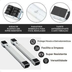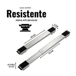 O suporte base rodinhas carrinho ajustável geladeira fogão é perfeito para quem deseja mover móveis e eletrodomésticos pesados de forma prática e fácil. Com material super-resistente e discreto, esse suporte com rodinhas permite que você altere a posição dos móveis para limpar ou encaixar em locais difíceis. Esse suporte é ajustável, podendo variar de 40 cm até 70 cm de tamanho, o que o torna fácil de usar e se adapta às suas necessidades. Além disso, possui travas que garantem a segurança do eletrodoméstico ao movimentá-lo. Feito em aço resistente e reforçado, esse suporte é capaz de suportar até 200kg, garantindo durabilidade e segurança. Sua instalação é simples e rápida, e sua base antiderrapante e anti vibração evita danos aos móveis e eletrodomésticos. Com o suporte base rodinhas carrinho ajustável geladeira fogão, você também protege seus eletrodomésticos e móveis contra a água da limpeza, evitando ferrugem e estragos nas madeiras. Especificações técnicas: - suporta até 200kg - material: aço carbono, plástico e eva - cor: - dimensões do produto: mínima: 3,5 cm x 40cm x 5 cm máxima: 3,5 cm x 70 cm x 5 cm - peso do produto: 1,40 kg