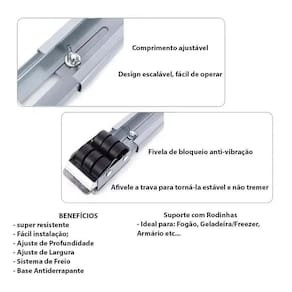Além disso, esse suporte é compatível com diversos modelos de geladeira e fogão, garantindo versatilidade e adaptabilidade para diferentes necessidades. Seja para mudanças de layout na cozinha, limpeza do ambiente ou simplesmente para facilitar o acesso aos eletrodomésticos, o Suporte Base Rodinhas Carrinho Ajustável para Geladeira Fogão é a solução ideal.