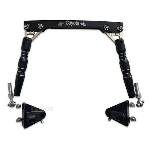 Suporte Billet Cofre Ford Maverick - Modelo Coyote Part number PV8-162 Par de suporte billet para cofre ; Fabricados em CNC de alumínio T-6061 em acabamento polido ou preto anodizado; Compatível com projetos onde foi retirado as torres para receber motores bigblock ou modernos coyote ; Alto padrão de acabamento Marca: Não Informado