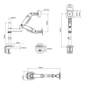 Suporte Braço Articulado para Monitor 17 a 34 Pistão a Gás H100 NB - Modelo: H100