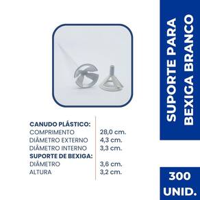 Característica: - Vareta em plástico resistente com suporte. Contém: 1 pacote com 10 unidades Canudo Plástico: Comp: 280 mm x Diâm. Externo: 4,3 mm x Diâm. Interno: 3,3 mm Suporte de Bexiga: Diâm.: 36 mm x Alt.: 32 mm