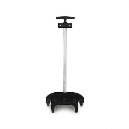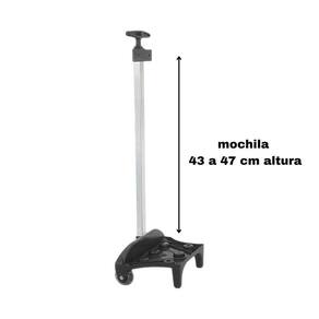 Capacidade : Modelo 45 cm ( indicada para mochilas/ mala com 43 a 47 cm de altura ), 50 cm ( 48 a 52 cm ) Altura da haste : esticada o suporte ficará com 90 cm Material: Haste de alumínio e base PVC rígido, rodinhas de silicone Indicação: Adultos e juvenis. Peso do produto: 450 gramas
