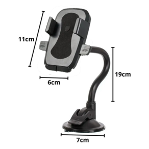 - Base de ventosa de silicone que se fixa em diversos materiais, como madeira, vidro, plástico, metal etc. Portanto irá fixar tanto no vidro como no painel do carro.