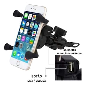 Suporte de Celular Para Moto Com Carregador Universal Usb Suporte GPS Garra Para Guidão de Moto Seguro Suporte Para Celular de Moto Com Carregador Universal USB Garra Seguro Forma X O Suporte de Celular para Moto Garra X é o modelo mais completo e ideal para quem busca mais praticidade e mais segurança em seu dia a dia. Podendo ser fixado tanto no Retrovisor, quanto na Mesa do Guidão. Este suporte possui uma entrada USB para o carregamento de seu aparelho. A fixação do aparelho celular é extremamente rígida e prática, além de contar com uma proteção extra, que é a borracha de travamento total. Assim o celular não escapará, por maiores que sejam as vibrações de sua moto. Produto fabricado com materiais de alta qualidade. Testado e aprovado pelas normas de segurança. Obs: Os terminais do cabo de carregamento que sai do suporte deve ser conectado aos terminais da bateria, sendo o vermelho no positivo e o preto no negativo. É uma conexão simples, no entanto, se não tiveres habilidades para realizar esta instalação, sugiro que peça ajuda a um especialista. Instalação:Retrovisor ou Guidão com rosca de 8 à 10 mm. Descrição Técnica:Medidas de Celular/ GPS: 3 á 7 Polegadas.Voltagem de Entrada: 12V - 24V.Voltagem de Saída: 5V. padrão Corrente de Saída: 2,1 AComprimento do fio: 1.35 M Conteúdo da Embalagem:01 Suporte Completo Garra X com carregador USB01 Borracha de travamento Total.02 Borrachas de apoio reserva.02 Selos de fixação.