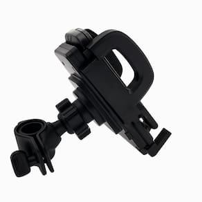 Estrutura em plástico ABS de alta resistência. Fixação prática e ajustável no guidão. Sistema de trava que impede o celular de se soltar durante o trajeto. Almofadas internas emborrachadas que protegem contra riscos e arranhões. Rotação 360 com articulação esférica, permitindo uso na vertical ou horizontal.