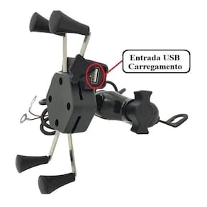 Suporte Celular Moto Com Carregador Universal USB Garra X