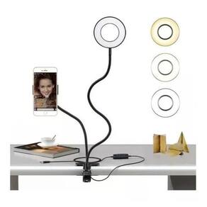 Suporte celular ring light usb luminária led para youtubers Descrição Solução ideal para você que fica até tarde estudando, trabalhando, fazendo lives ou vídeos. O ring light mais vendido nos market places está com um proço mais que especial enquanto durarem os estoques. Ring light completo suporte celular maquiagem live stream youtuber Iluminador ring light suporte live stream celular com controle faca vídeos com qualidade ou tire ótimas fotos de selfie com este suporte ring light. Acessório perfeito para criar vídeos para etc. Hastes flexíveis que podem dobrar para qualquer forma, suporte de rotação do smartphone gira 360 graus. Ajuste para qualquer ângulo para obter uma iluminação perfeita. 1. Suporte flexível e ajustável: suporte para celular de 360 graus, livre para ajustar qualquer ângulo que desejar, para uma visão conveniente, tirar fotos ou gravar vídeos. 2. Brilho ajustável: branco frio, branco natural, amarelo quente. Ele será útil sempre que você precisar de mais luz para fazer as fotos, fazer vídeos, ler livros e transmitir 3. Suporte universal de telefone celular: a largura deste suporte de telefone celular é de 2,28 polegadas, no mínimo, até 3,15 polegadas, no máximo, será compatível com a maioria dos telefones inteligentes. 4. Luz led usb powered: conecte a uma porta usb e trabalhe com vários dispositivos. Você será capaz de desfrutar da luminária a qualquer momento livremente 5. Suporte de grampo sturdy: o corpo de liga de alumínio facilita o processo, ajustando livremente o comprimento da barra. 6. Portátil: alongado e dobrável, para armazenamento conveniente. Fácil desmontar. Produto: Material ring light: polipropileno, ferro e componentes eletrônicos Material do suporte: metal articulável e polipropileno Possui 12 leds Potência: 15w Temperatura do led: regulável branco quente, natural e frio Temperatura da cor: 3200k até 5500k Ajuste de intensidade da luz de 10% até o máximo 100% Tamanho de 9 cm de diâmetro do iluminador Comprimento do cabo de energia: 1,5 metros aproximadamente. Contém: 1x suporte com anel luz Marca: Não Informado