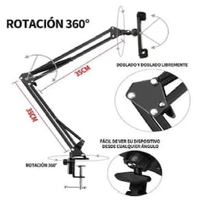 Projetado com braços de alumínio estáveis montados com três parafusos que oferecem solidez e resistência. A barra de direção pode ser ajustada livremente no ângulo desejado. Possui acabamento em uma cabeça esférica de 360 que permite manusear o smartphone ou tablet no ângulo preferido. Perfeito para usar o tablet como uma segunda tela de trabalho.