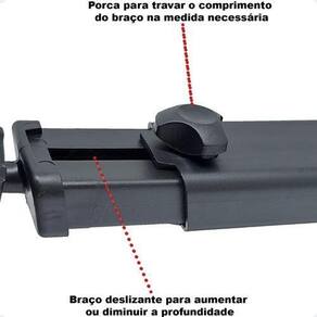 Suporte totalmente articulado, você pode regular a profundidade que seu smartphone ficara, ou seja, regule a que distância você quer que seu smartphone fique do vidro do carro em seu sentido.
