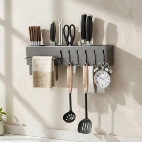 Suporte Cinza Organizador Utensílios De Cozinha 06 Ganchos