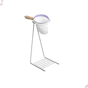 Esse suporte é feito em aço cromado, garantindo durabilidade e resistência. Já o coador é confeccionado em malha 100% algodão, com aro de arame galvanizado e cabo em madeira, proporcionando um café fresquinho e saboroso a cada preparo.
