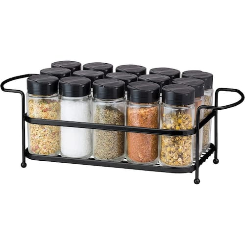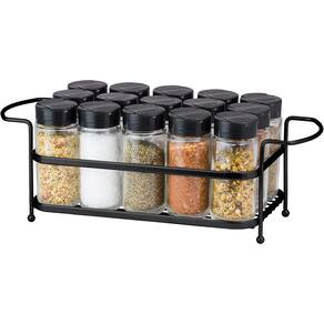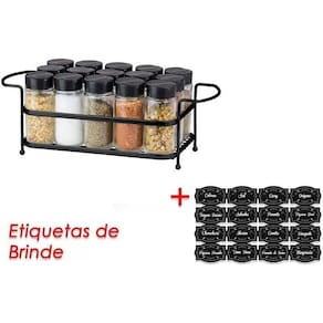 Suporte Com 15 Vidro De Tempero Black O porta temperos de vidro é indispensável em sua cozinha. Com esse suporte aramado você terá os temperos sempre ao alcance, durante o preparo dos alimentos. Possui design inovador com acabamento em alto brilho, além de alças laterais que auxiliar no transporte, por isso pode facilmente ser levado a mesa para complementar as refeições.