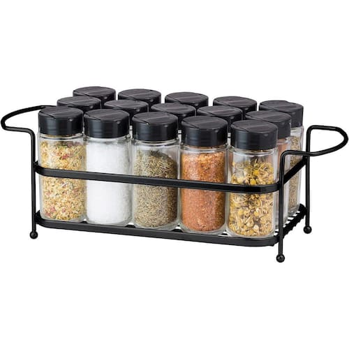 O suporte de condimentos conta com 15 vidros para que os temperos sejam armazenados individualmente. Por cada pote de vidro possuir corpo transparente se torna fácil a visualização do conteúdo. Pode ser armazenado dentro do armário e até mesmo sobre a bancada. Tenha praticidade e qualidade em sua cozinha com este porta temperos.