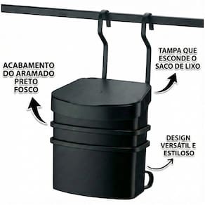 O suporte para lixeira é funcional e de fácil limpeza, proporciona agilidade no dia a dia, pois a lixeira está de fácil acesso, possui tampa removível e que permite que a sacolinha plástica fique fixa e não aparente.