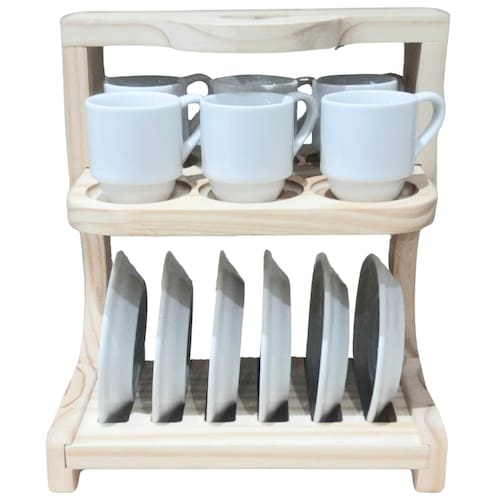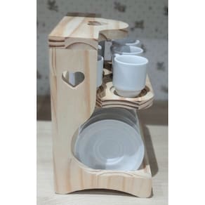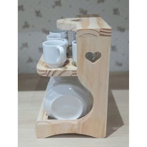 Suporte Coração p/ 6 Xicaras Café c/ Pires - Madeira pinus Nosso Suporte para xícaras de café é simplesmente charmoso e muito prático para organizar as xícaras ao servir seu café Ótimo para te ajudar à desfrutar de momentos valorosos e porque não saborosos na companhia da familia e amigos. Suporte em madeira pinus Acondiciona 6 xícaras de Café e 6 Pires As Xícaras e Pires não acompanham este item. São apenas ilustrativasOBS: Por se tratar de madeira de pinus natural, pode existir pequenas variações na tonalidade das cores da madeira. Embalagem contêm 1 peça Marca: Antilope Decor Porcelanas