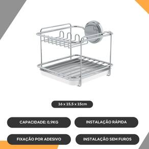 Ventosas de alta aderência permitem uma fixação segura na parede da pia, sem necessidade de furar ou danificar a superfície.