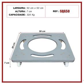 Suporte De Alumínio Quadrado Com Rodízios Gel Para Vaso 50CmSuporte de alumínio Quadrado com rodinhas de silicone gel anti-risco e anti ruido.Ideal para facilitar a locomoção de objetos em geral, como vasos de plantas, eletrônicos, eletrodomésticos, entre outros.Em qualquer ambiente, sem ruídos e sem riscar ou danificar o seu piso 4 rodízios giratórios - suportam até 320kgModelo SQA50Medidas técnicas do suporte: Altura total: 7 cm; Largura da base: 50x50 cm;Medidas técnicas do rodízio:Contém 4 rodasDiâmetro da roda: 50 mm;Vantagens:· grande durabilidade e resistência;· não enferrujam;· não riscam;· antirruídos;· suportam grande quantidade de peso
