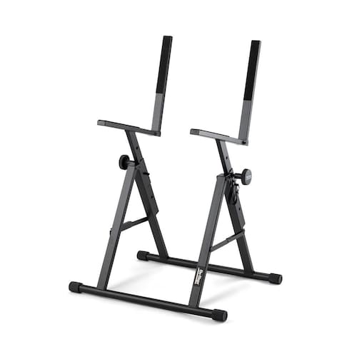 - Ajustável. Os braços de suporte ajustam-se em altura de 43 a 61 cm para permitir a direção precisa do som para uma ampla variedade de amplificadores. As configurações de altura são fixadas com botões de aperto e pinos de travamento. O acolchoamento antiderrapante nos braços protege os amplificadores de arranhões e aumenta a tração para garantir a estabilidade.