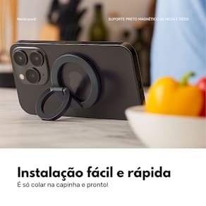 Compatível com MagSafe, oferece encaixe firme e seguro, tanto no dedo quanto como apoio de mesa.Uso