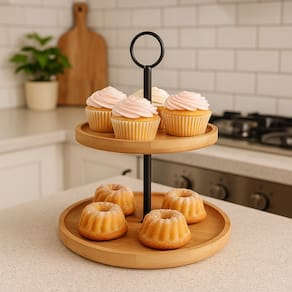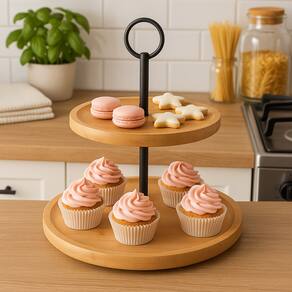 Suporte para Doces e Petiscos veio para estar presente nos melhores momentos. Com 2 andares, ou seja com duas bases redondas, uma menor e outra maior, ele é perfeito para evidenciar os alimentos dispostos nele. Sua estrutura é metálica, garantindo sustentação ao suporte e as duas bases são feitas de Bambu, material conhecido por possuir agentes fungicidas e bactericidas, deixando seus alimentos livres de fungos e bactérias. Com dois andares espaçosos, este suporte oferece ampla capacidade para apresentar uma variedade de alimentos. Seu design em níveis permite uma exibição elegante e acessível, tornando seus quitutes o destaque da mesa.