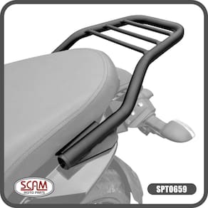 CARACTERÍSTICAS: - APLICAÇÃO: FZ 15 / Fazer 150 (2023 em diante) - INCLUI: Suporte baú superior + Itens de fixação + Instrução de montagem - FIXAÇÃO: Utiliza fixação da alça do garupa, substituindo as alças de fábrica - MATERIAL: Desenvolvido em tubo de aço carbono de 22mm de diâmetro - CAPACIDADE: 10kg - COR: Preto fosco
