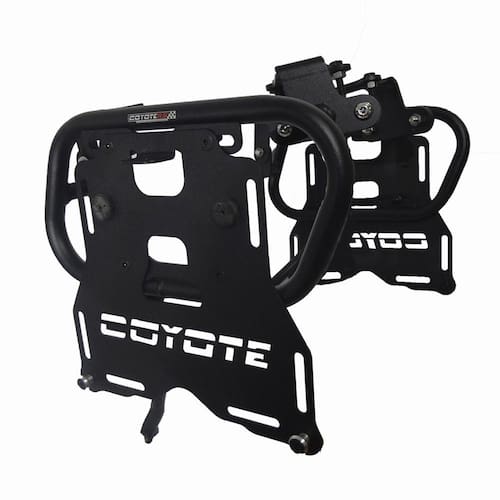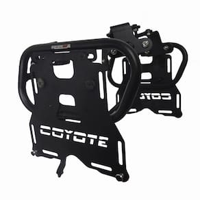 Conheça o produto:O suporte de baú lateral da COYOTE foi desenvolvido para a utilização de baús laterais das principais marcas do mercado, com design único e robustez, posicionando o baú lateral de forma mais firme e respeitando o espaço do passageiro.Fabricados com matéria-prima certificada e com controle de qualidade rígido, alinhado a alta tecnologia de fabricação, garantem que o produto possua maior durabilidade. Não possuem soldas e seu sistema de montagem é simples e reforçado, absorvendo as vibrações das irregularidades do piso. Máquinas de corte a laser, dobra cnc de última geração e pintura eletrostática garantem o produto de melhor qualidade do mercado. Dentro da embalagem acompanham todos os parafusos, tuchos e suportes necessários para a devida instalação na qual recomendamos que seja feita por um profissional da área.
