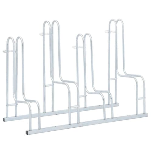 - Economia de espaço: este suporte de bicicleta tem um design de roda alta-baixa e acomoda quatro bicicletas sem emaranhar o guidão, otimizando o espaço para um estacionamento eficiente.