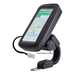 Suporte de celular e gps de até 6,5 pol com carregador usb para moto