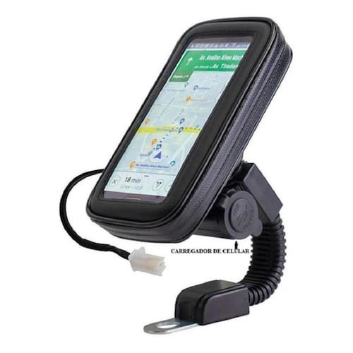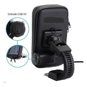 - com armação giratória 360 - case impermeável com fechamento em zíper duplo. - fixação no retrovisor - alta durabilidade - carregador usb - articulável resistente - plástico de alta durabilidade; - ajustável em várias posições rotação 360 ; - película transparente; - resistente contra chuvas, não pode ser submerso na água; - alça de segurança na capa que deve ser fixada, para ser um backup e evitar a queda do celular em caso de quebra do suporte; - haste flexível de aprox. 19,5 cm de comprimento; - fixação na base do retrovisor; - entrada usb 5v 2a alimentação 12v/ 24v ; - tampa impermeável; - comprimento aprox. Do cabo: 60 cm.