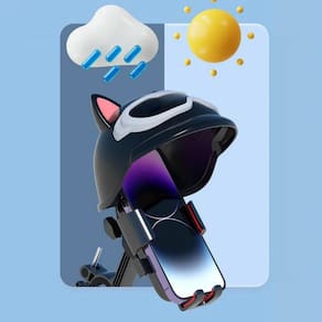 Chega de preocupações com sol forte ou chuva inesperada durante seus trajetos! Nosso suporte de celular em formato de capacete é o acessório inteligente e prático que protege seu smartphone enquanto você pedala ou pilota!