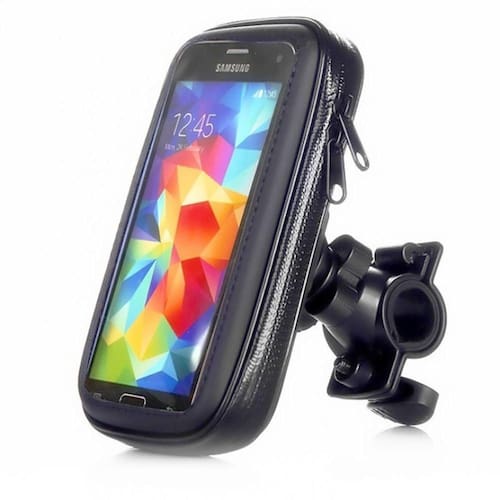 Material: material sintético e plástico Rotação em 360° Abertura do suporte: Até 27mm verifique a espessura do guidão Acompanha 2 espumas removíveis que servem para que o celular se encaixe perfeitamente na capa. Altura máxima permitida do celular: 14,50 cm Conteúdo da Embalagem: 01 Capa protetora para celular e gps 01 Suporte Bike / Moto Marca: Não Informado