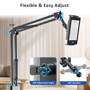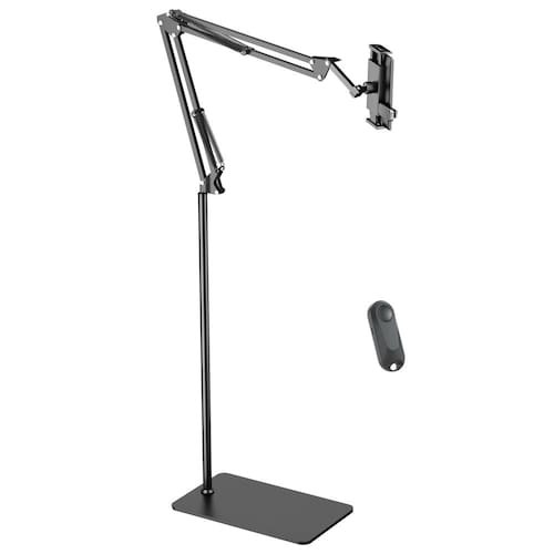 Suporte de tablet de chão para leitura Kindle na cama - ?Durável e resistente?Diferente de outros suportes de pescoço de ganso de plástico, este suporte de chão é feito de metal, que é muito mais durável e resistente. A base de metal é maior e mais espessa, o que faz com que o suporte não se filme, mais estável e confiável. - ? Virador de página para Kindle?Essencial para leitura de acessórios Kindle na cama. Não é necessário tocar na tela o tempo todo para virar as páginas, basta prender a tela para virar as páginas remotamente. O virador de página remoto sem Bluetooth WiFi, liberta suas mãos, chega de braços frios e entorpecidos no inverno, você pode se aconchegar calorosamente no cobertor. Presente ideal para leitores com mobilidade limitada ou para aqueles que não querem segurar um kindle! - ? Leitura ajustável e mãos livres? Este braço pescoço de ganso faz você ler na cama, com controle remoto incluído, mãos livres quando lido com seus e-Readers. Em comparação com outros suportes de pescoço de ganso, este design é mais fácil para ajustar o ângulo que você precisa e manter seu dispositivo mais resistente. Ótimo presente para leitores amantes de livros. - ?Compatível com a maioria dos eReaders/Tablet/Celular?O botão remoto para virar páginas é compatível com a maioria dos dispositivos Kindle, incluindo Kindle Paperwhite, Kindle Oasis, Kindle Scribe, Kindle 10, Kindle 11, o que o torna um acessório de leitura ideal. Também compatível com Kobo. Compatível com tablets da série Fire HD, iPad exceto iPad Pro de 12,9 polegadas, iPhone - ? Economize espaço ? O suporte não precisa de ferramentas para instalação, é uma base plana, você pode colocar a base sob a cama ou sofá, economizando muito espaço para sua leitura, assista a vídeos tiktok de telefone/tablet, transmissão ao vivo, gravação de vídeo