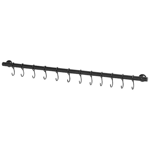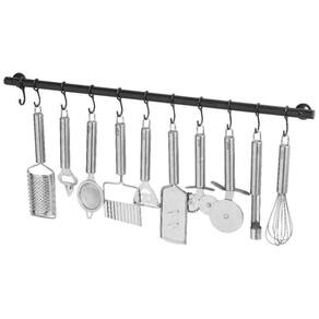 Suporte De Cozinha Porta Talheres 100cm Com 18 Ganchos Preto.